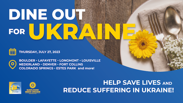If you are in Colorado on July 27, eat out at one of the many participating restaurants and cafés throughout the Front Range and help save lives in Ukraine. Find out about participating venues in Boulder, Lafayette, Longmont, Louisville, Golden, Denver, Fort Collins, Colorado Springs, Estes Park and more at https://www.sunflowerseedsukraine.org/dine-out-for-ukraine