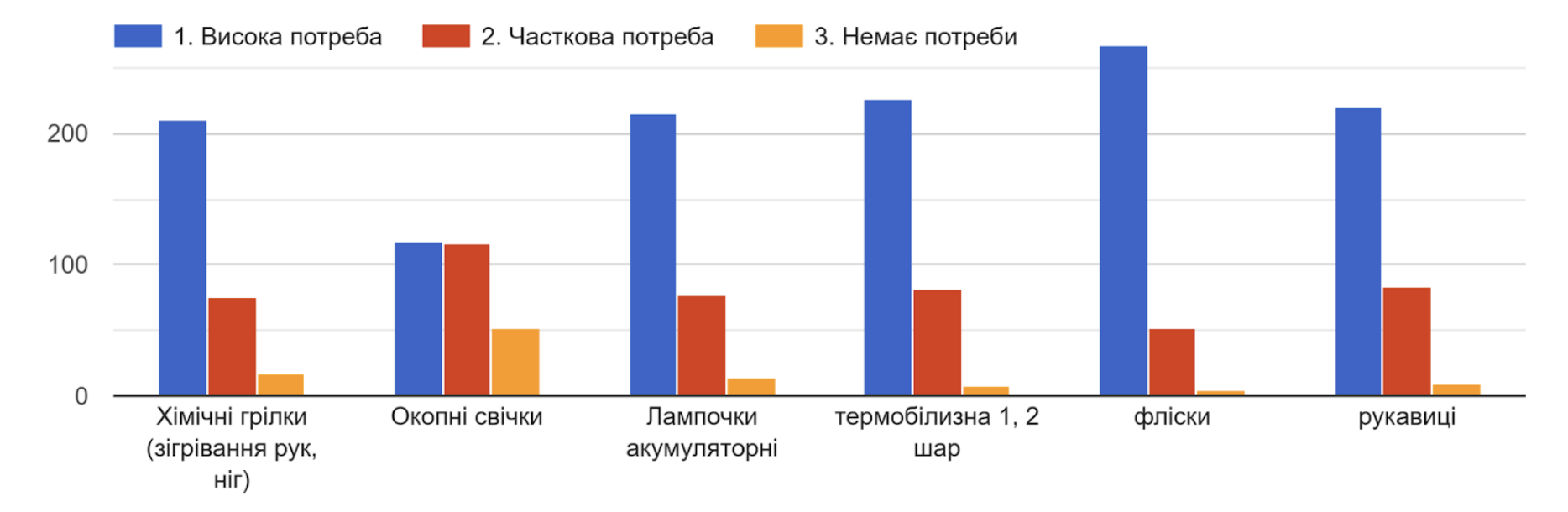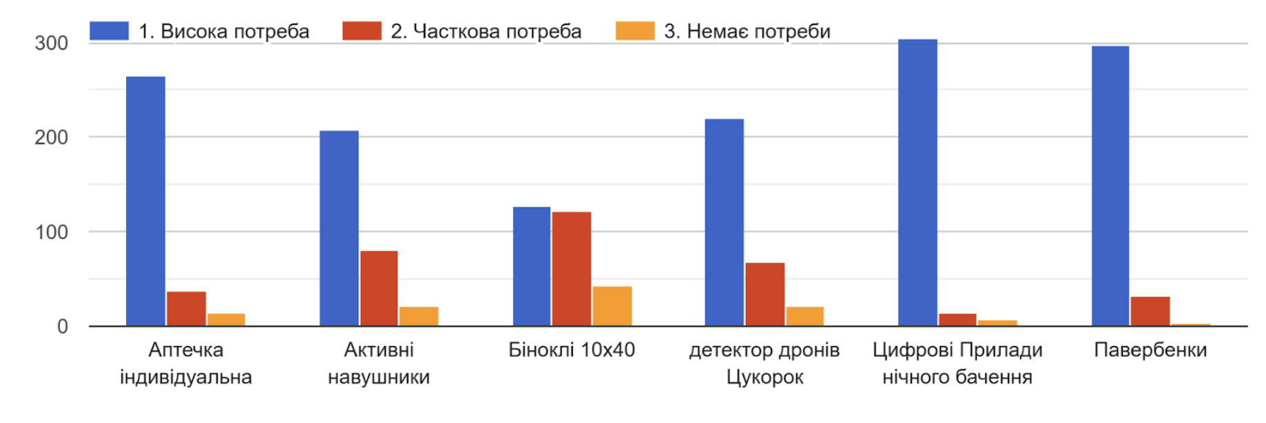 Серед спорядження найчастіше високою визначали потребу у: