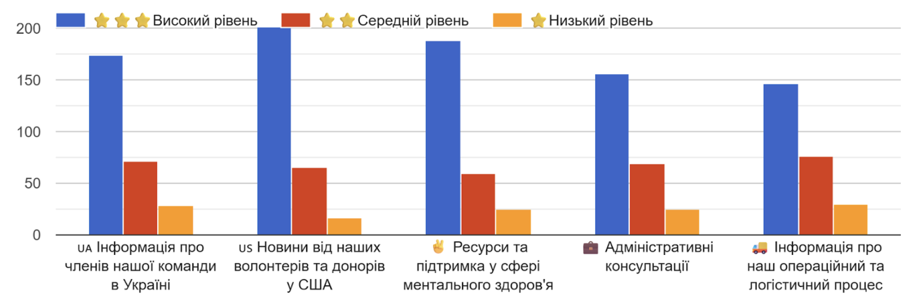 Також в нашому опитуванні більшість респондентів відзначили високий рівень взаємодії волонтерів Sunflower Seeds Ukraine та організації процесу комунікації з отримувачами допомоги.Щиро дякуємо за Ваші оцінки! Це надихає нас лупати сю скалу й надалі.