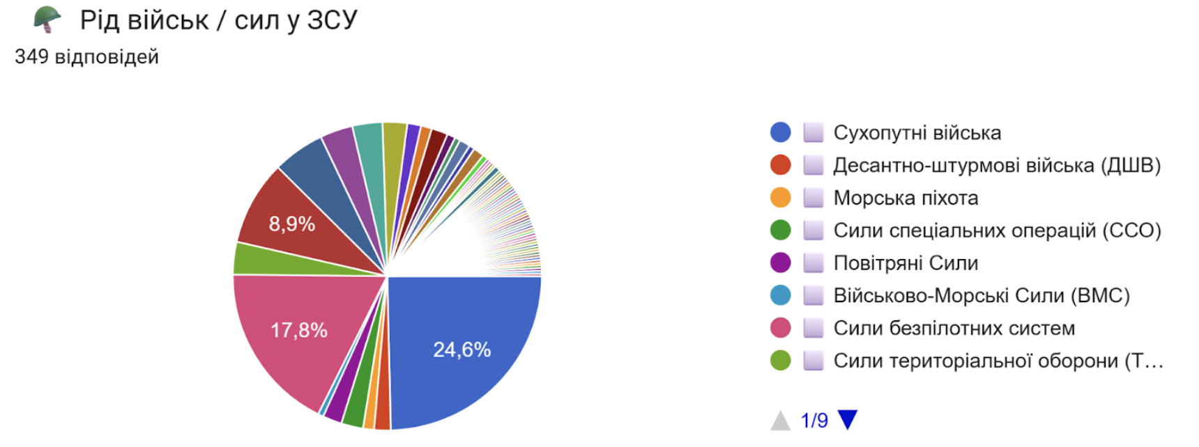 Найбільш активними учасниками опитування були отримувачі допомоги з таких видів військ: