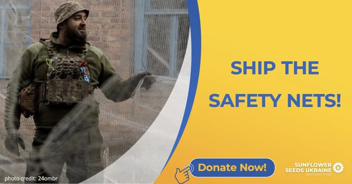 Read on to learn about how your donations were used in February and about upcoming events near you. We also highlight recent examples of how ingenuity and resourcefulness are making a difference in Ukraine: recycled fishing nets that can protect evacuation and supply lines from drone strikes, repurposed solar panels from Montana that now power a university in Ukraine, and direct communication with Defenders that allows us to provide the most useful supplies possinle to the heroes protecting the world from authoritarianism and barbarism.