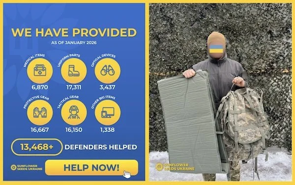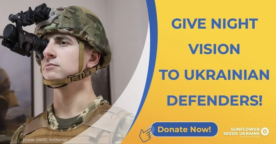 Calling future team members - Sunflower Seeds Ukraine needs you! Without the tireless efforts of our all-volunteer team, we wouldn’t be able to provide more than a thousand pieces of essential equipment to Ukrainian Defenders each and every month. We wouldn’t be able to raise funds, host events, organize donation pickups, pack pallets, answer emails, ship web store orders, connect with donors, or share our story in this newsletter. Our small team has, and continues to have, a mighty impact, but we always need more help. That’s where you come in. We have a range of part-time in-person and remote volunteer positions, from videographer to medical aid procurer to inbox assistant, posted on our website. Take a look and drop us a line if you’d like to contribute. We look forward to hearing from you.